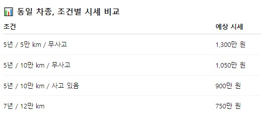 실제 예시를 통해 내 중고차 시세가 어떻게 달라지는지 살펴볼 께요.