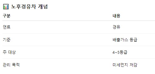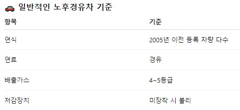 노후경유차 여부는 차량 연식 + 배출가스 기준을 함께 봐요.