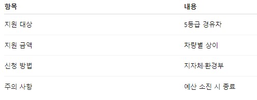 노후경유차 중 5등급 차량은 조건 충족 시 조기폐차 지원금을 받을 수 있어요.