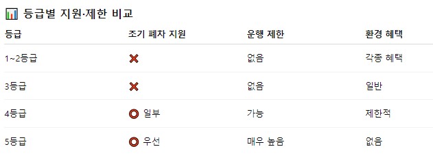 ※ 조기 폐차 지원금과 직접적으로 연관되는 등급 : 4등급·5등급