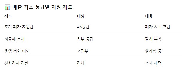 배출 가스 등급 조회 후 4등급 또는 5등급이라면 다음 지원 제도를 검토할 수 있어요.