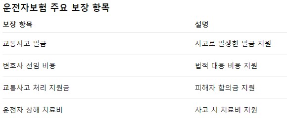 운전자보험은 운전 중 발생할 수 있는 형사적 책임과 비용을 보장하는 보험이에요.