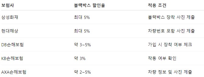 보험사마다 블랙박스 할인율과 조건은 조금씩 달라요.