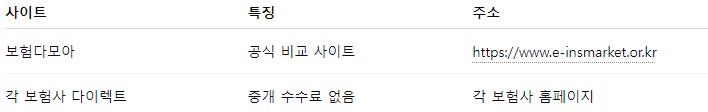 ※ 보험 비교 사이트 활용