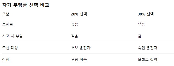 비율을 낮추면 사고 시 부담은 줄지만 보험료는 올라가고,