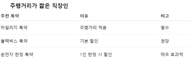 ㅁ 마일리지 특약은 체감 할인 폭이 가장 커요. 주행거리가 짧은 직장인, 재택근무자는 반드시 확인해야 해요.