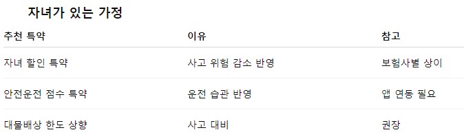 아이를 태우고 운전하는 경우 안전운전 특약도 함께 고려해볼 만해요.