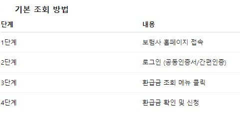 아래는 주요 보험사 조회 방법을 정리한 표예요.