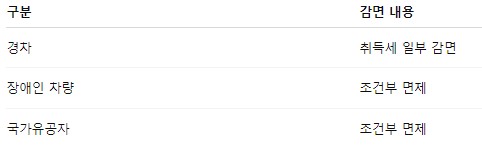일부 차량은 취득세 감면 혜택을 받을 수 있으니 꼭 확인하세요.