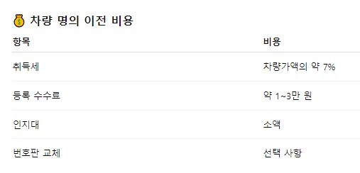 2. 차량 명의 이전 준비 서류와 비용
