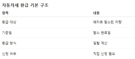 자동차세 환급은 말소일 다음 날부터 연말(또는 납부 종료일)까지의 기간을 기준으로 계산돼요.