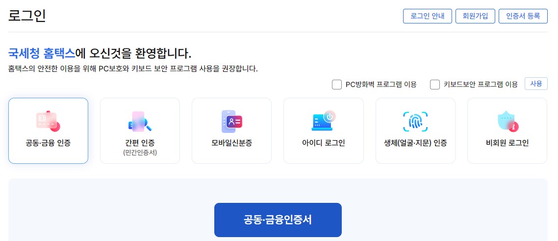 먼저 홈텍스에 들어가서 로그인을 해요.