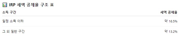 IRP 계좌는 단기 투자 상품이 아니라, 장기 유지 + 절세 효과를 동시에 노리는 제도라 할 수 있어요.