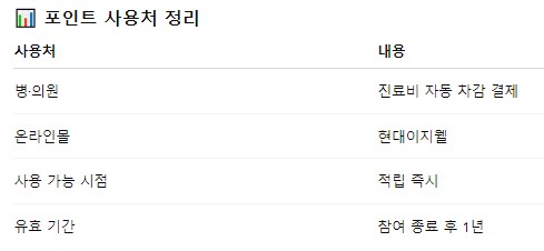 1포인트 = 1원으로 병원 진료비 결제 가능하고, 지정 쇼핑몰에서도 사용 가능해요.