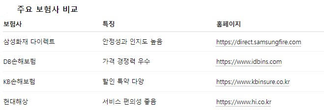 자동차 보험은 보험사마다 조건과 가격이 다르기 때문에 비교가 가장 중요해요