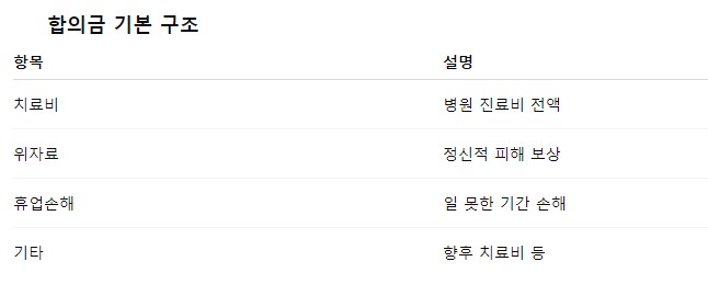 ㅁ 합의금은 여러 항목의 합산 구조예요