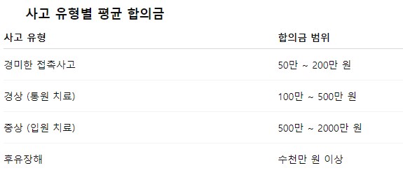 사고 유형에 따라 대략적인 합의금 범위가 존재해요.