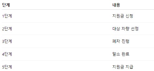 지원금은 폐차 전에 반드시 신청해야 해요. 순서를 지키지 않으면 지급이 불가능해요.