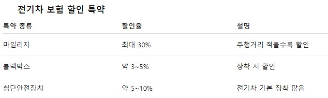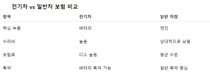 전기차 보험은 몇 가지 항목에서 차이를 보여요.