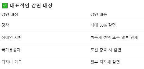 감면 여부는 차량 종류 + 구매자 조건 + 지역에 따라 달라지므로, 반드시 사전에 확인하세요.