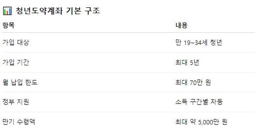 청년 도약계좌의 기본 구조는 다음과 같아요.