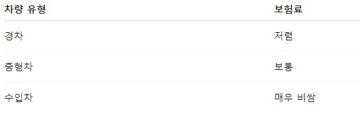ㅁ 나이, 경력, 차량이 보험료에 큰 영향을 준다