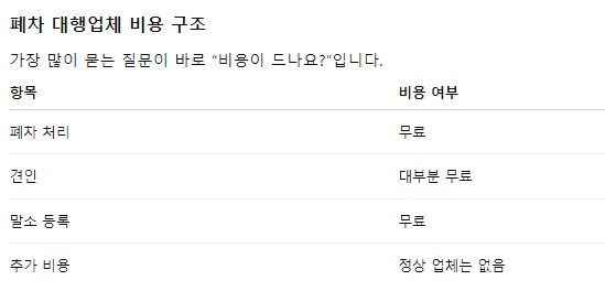 정상적인 폐차 대행업체는 비용을 요구하지 않아요.