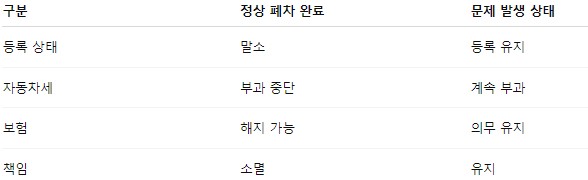 차량 폐차의 진짜 종료는 차량 등록 말소라 할 수 있어요. 말소가 되지 않으면 차량 소유 책임이 계속 유지돼요.