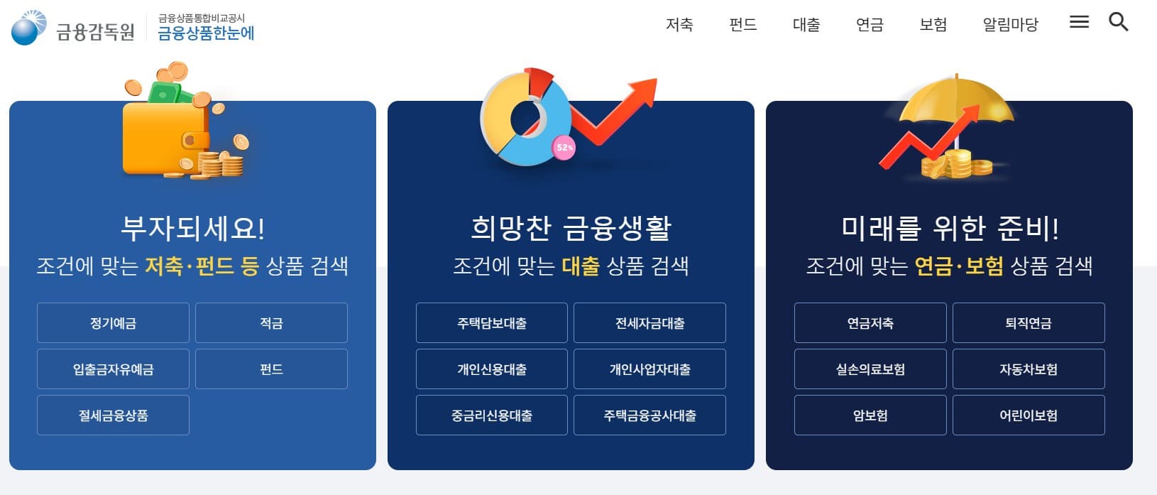 금융감독원 금융상품 통합 비교 공시